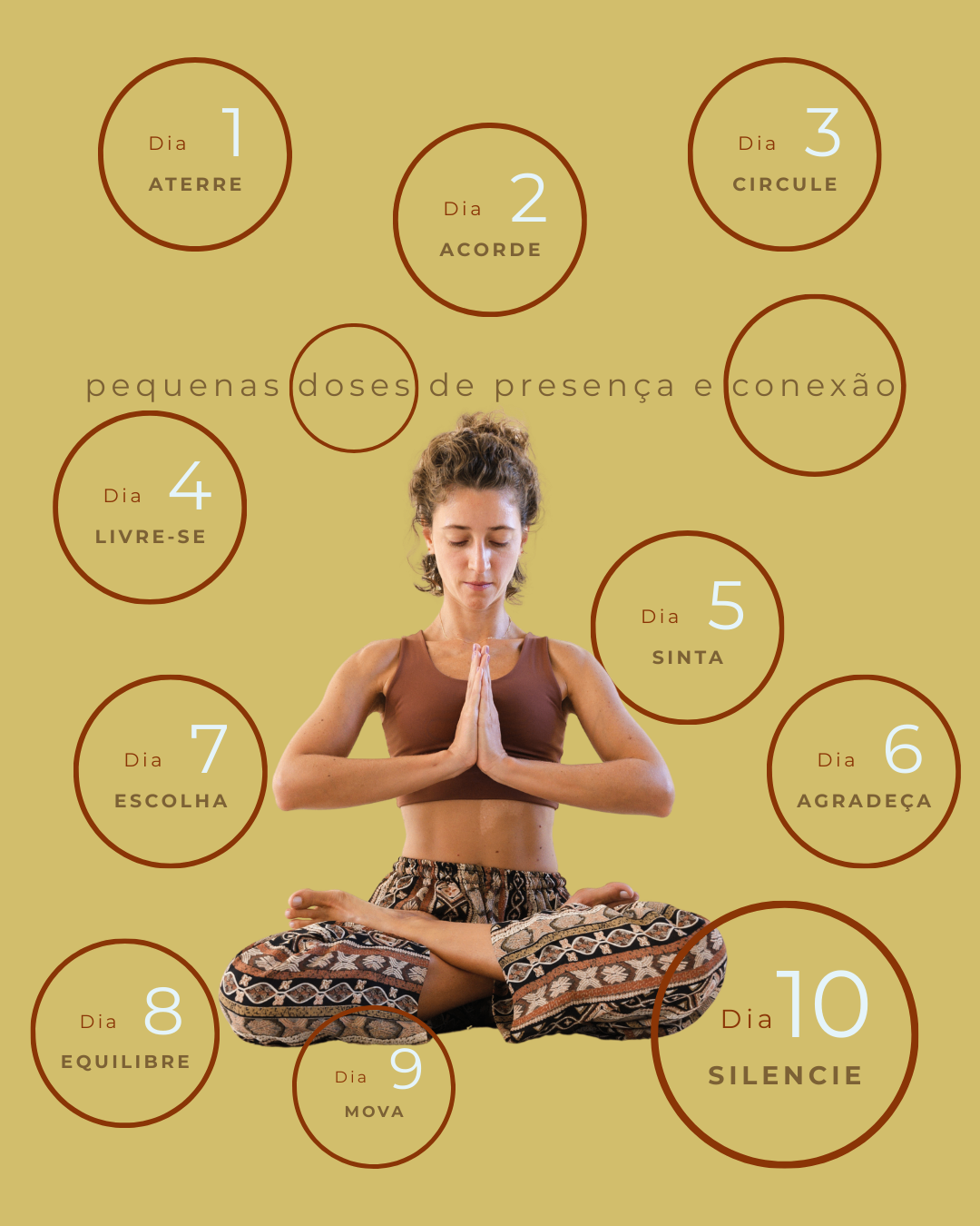 O convite é que você se desafie a praticar durante os 10 dias, criando um pequeno ritual diário de presença. Depois disso, você pode continuar repetindo as práticas que fizerem mais sentido para o seu momento.